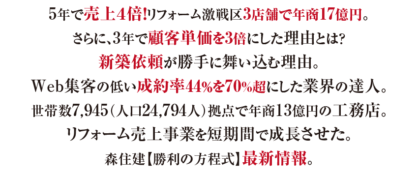 軸事業が年商9億から3億へ激減。そんな中、リフォーム事業に参入し大成功。今では顧客から新築を依頼される企業に!