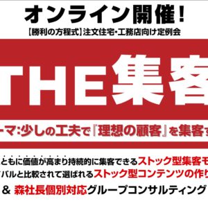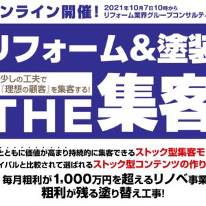業界によっては脱チラシが加速化! 「脱チラシ」の動きが加速しています。特に新聞折込チラシ。業界によりますが、遅かれ早かれ、そうなるでしょう。後輩が経営する地元でNo.1の不動産会社。彼の会社は分譲、賃貸、不動産投資、相続の事業をしていますが、2008年には新聞折込チラシを止めています。費用対効果が合わないからです。また、2018年頃にはフリーペーパーへの広告掲・・・ 続きを読む 【コラム】話さなくても、お客様に『大切にしている』ことを・・・ 2021年09月03日 トップ営業 & マネジメントの必須スキル。もし、相手の気持ち・考え・感情が手に取るように感じられたら!年単位でコミュニケーション研修を担当してます。・・・ 続きを読む 【コラム】人間の真価が問われている。金メダルより大切なこ・・・ 2021年08月20日 東京オリンピック4日目、7月26日。柔道男子73キロ級が日本武道館で行われました。そして、2016年リオデジャネイロオリンピック金メダリストの大野将平選手が・・・ 続きを読む 【オンライン開催】10月7日リフォーム業界グループコンサ・・・ 2021年08月20日 2021年10月7日(木)10:00~11:30リフォーム業界グループコンサルティングを開催いたします。(Zoomによるオンラインでの開催)&n・・・ 続きを読む 【オンライン開催】9月9日注文住宅・工務店向け定例会 2021年08月20日 2021年9月9日(木) 10:00~12:00注文住宅・工務店向け定例会【勝利の方程式】をオンラインで開催いたします。『勝利の方程式』定期勉強会・・・ 続きを読む 【9/3 11:00~オンライン開催】工務店様向け最新集・・・ 2021年08月18日 【オンライン開催】工務店様向け最新集客セミナー2021年9月3日(金) 11:00~11:40(受付時間:10:50〜)※終了予定が延長する場合がござい・・・ 続きを読む 【9/2 11:00~オンライン開催】リフォーム会社様向・・・ 2021年08月18日 【オンライン開催】リフォーム会社様向け最新集客セミナー2021年9月2日(木) 11:00~11:40(受付時間:10:50〜)※終了予定が延長する場合・・・ 続きを読む 【9/1 11:00~オンライン開催】塗装会社様向け最新・・・ 2021年08月18日 【オンライン開催】塗装会社様向け最新集客セミナー2021年9月1日(水) 11:00~11:40(受付時間:10:50〜)※終了予定が延長する場合がござ・・・ 続きを読む 【コラム】社員の魂に灯をともす! 2021年08月06日 なぜ、オリンピックで感動するのか?そして、人の行動を変えられるのか?「人間は真善美にあこがれずにはいられない存在ですが、それは、心のまん中にその真善美そのも・・・ 続きを読む 夏季休業期間のお知らせ 2021年07月30日 夏季休業のお知らせ平素は格別のご高配を賜り、誠にありがとうございます。夏季休業期間についてご案内申し上げます。休業期間:2021年8月12日・・・ 続きを読む Page 19 of 56« First‹ Previous151617181920212223Next ›Last »