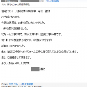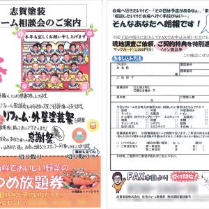 塗装 2日間のイベントで概算見込み6,430~8,470万円の・・・ 2017年06月28日 先日こちらの記事でセミナー集客で内容が良かったとしても次アポ率・成約率は上がらないということをお伝えしました。大切なのは、「何を目的にして開・・・ 続きを読む チラシ集客のその後は・・・ 2017年06月16日 さて、別の記事でご紹介した成功事例。こちらの会員さんから今回の結果について再度ご報告いただきました。今回「塗装のチラシな・・・ 続きを読む 成功したら続けてみる 2017年05月31日 先日もご紹介したチラシ事例で新たな実践報告を頂きました。 「19件の問い合わせで、12件決まりました。まだ、金額は出ていま・・・ 続きを読む 集客は絶好調!集客後の課題は? 2017年05月17日 集客は絶好調!集客後の課題は?高額リフォームの見込み客が集まる、費用対効果に優れたフロントエンドセミナーのチラシの事例です。この資料は、会員・・・ 続きを読む 5万部一色刷りの外壁塗装1本釣りチラシ 2017年04月26日 先日会員さんから「去年秋に広告出しました。結果、1,000万のアパート塗装工事が決まりました。」とご報告のメールを頂きました。そのチラシ・・・ 続きを読む アポ率77.9%のチラシ事例 2017年03月10日 今年からチラシの配布部数を25%減らして、イベント集客を実践されています。59件の集客の内、現調アポが46件とはさすがです! &n・・・ 続きを読む アポ率60.2%、受注見込8,460万円のイベント集客チ・・・ 2017年01月20日 アポ率60%、成約率80%の仕組みで相談会イベントを開催する志賀塗装さんから今年の相談会の報告を頂きました!アポ率60.2%、受注見込8,460万円・・・ 続きを読む 成約率の高い顧客を集める方法 2017年01月13日 今年早々に相談会の開催をされた方、今から開催する方。新規客を集客するのはもちろん一番の目的だと思いますが、既存客の方へのアプローチをお忘れなく。・・・ 続きを読む Page 2 of 212