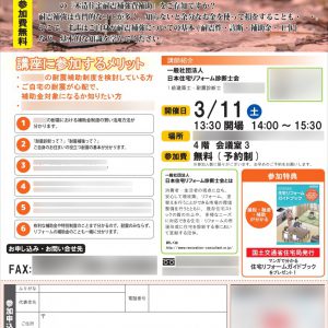 リフォーム 顧客の変化に目を向ける 2017年12月05日 ショールームでイベントを行う際、複数のメーカーのショールームで行うこともあると思います。今回頂いた事例は、いつものメーカーではなく、過去の開催で、・・・ 続きを読む 次のチラシ作りに欠かせないこと 2017年09月16日 先日はチラシの掲載内容についてお伝えしましたが、記事はこちらチラシの掲載内容 次のチラシ作りに欠かせな・・・ 続きを読む チラシの掲載内容 2017年09月06日 次回のグループコンサルティングでお伝えするテーマ 「なぜ、3倍の塗装価格チラシなのに、 1イベントで15組も次回アポが取れるのか?・・・ 続きを読む 2日間のイベントで概算見込み6,430~8,470万円の・・・ 2017年06月28日 先日こちらの記事でセミナー集客で内容が良かったとしても次アポ率・成約率は上がらないということをお伝えしました。大切なのは、「何を目的にして開・・・ 続きを読む 成功者に共通すること 2017年06月19日 将来は年商6億円の会社を目指していらっしゃる会員さんの事例をご紹介します。人口24,834人(世帯数9,010世帯)の市場で年商1.3億円、粗利・・・ 続きを読む 集客は絶好調!集客後の課題は? 2017年05月17日 集客は絶好調!集客後の課題は?高額リフォームの見込み客が集まる、費用対効果に優れたフロントエンドセミナーのチラシの事例です。この資料は、会員・・・ 続きを読む 3つのテーマで好調! 2017年04月20日 3つのテーマで昨年から集客が好調のようです。『一般社団法人 日本住宅リフォーム診断士会』を主催者として、耐震、屋根・外壁塗装、空き家対策をテ・・・ 続きを読む 大切な会社の資産 2017年02月17日 イベントを長年継続して開催しているリフォーム会社様のチラシです。 60組ほどの来場者から現調アポが18組獲得出来たとの・・・ 続きを読む 75%がリピート・紹介の会社の事例! 2017年01月16日 さて、先日OB客の方へのアプローチについてお伝えしましたが、(こちらの記事)【成約率の高い顧客を集める方法】その後、ある会員さんからお電話で、・・・ 続きを読む 成約率の高い顧客を集める方法 2017年01月13日 今年早々に相談会の開催をされた方、今から開催する方。新規客を集客するのはもちろん一番の目的だと思いますが、既存客の方へのアプローチをお忘れなく。・・・ 続きを読む Page 2 of 3123