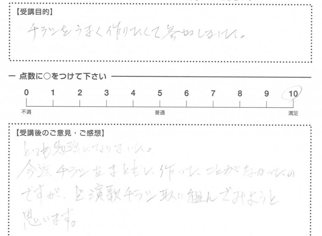 チラシをうまく作りたくて参加しました。